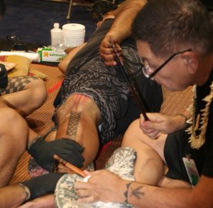 This intrinsic approach to tattoo lured many, both those painted and those unadorned. A Moloka’i man came to the Expo, observed, and made introduction, which led him to arranging an appointment with Makua in July.