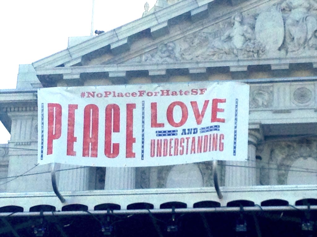 On Saturday, August 26th, thousands of Californians rallied for a ’Peace, Love, and Understanding” event outside San Francisco’s Civic Center. Tens of thousands of others turned out for a number of other peaceful marches and rallies around the city.