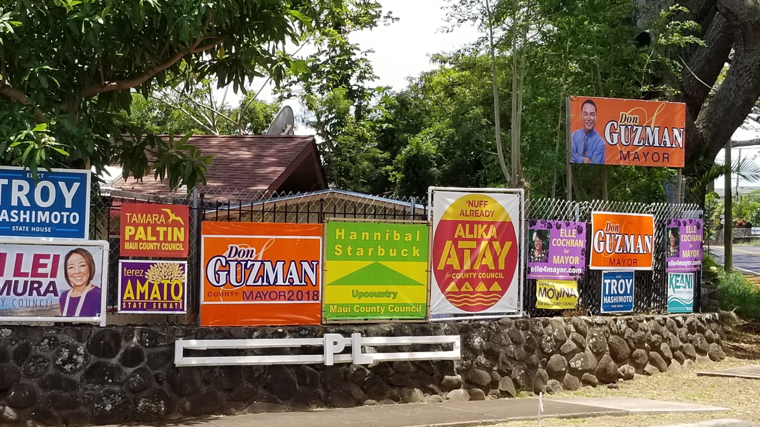 Due to the diligent perseverance of a group of female environmentalists back in the 1920s, Hawaii’s beautiful landscape has remained free of the blight of endless roadside billboards. But come election time local neighborhoods become blanketed with prominent signs by competing political candidates. This “sign wars” as it’s become known was highlighted by Maui mayoral